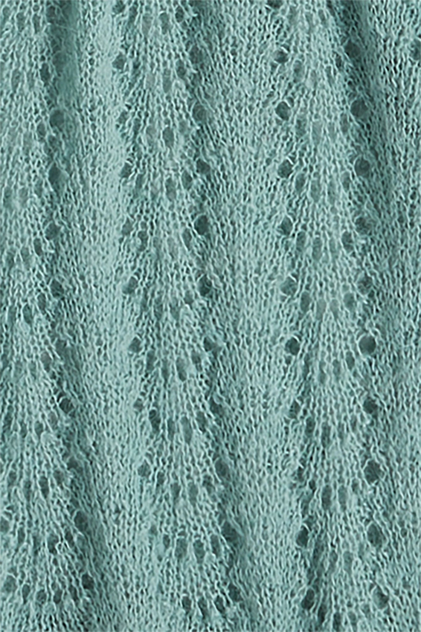 This scarf features a stretchy acrylic ajour knit, offering both comfort and style.