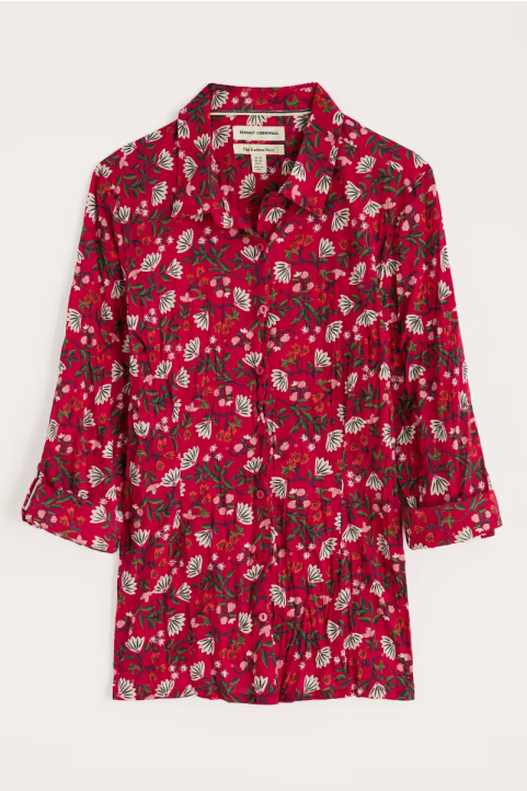 Our Larissa Shirt is a year-round favourite. Made from the softest organic cotton with a casual crinkled appearance, the beauty of this shirt is that it doesn’t need ironing – just wash and twist to keep the crinkle. This semi-fitted style is easy-to-style and comfortable, with long sleeves and button loops so you can roll up the cuffs to change your look. Each season, it showcases some of our most-loved prints, created by our talented textile designers.