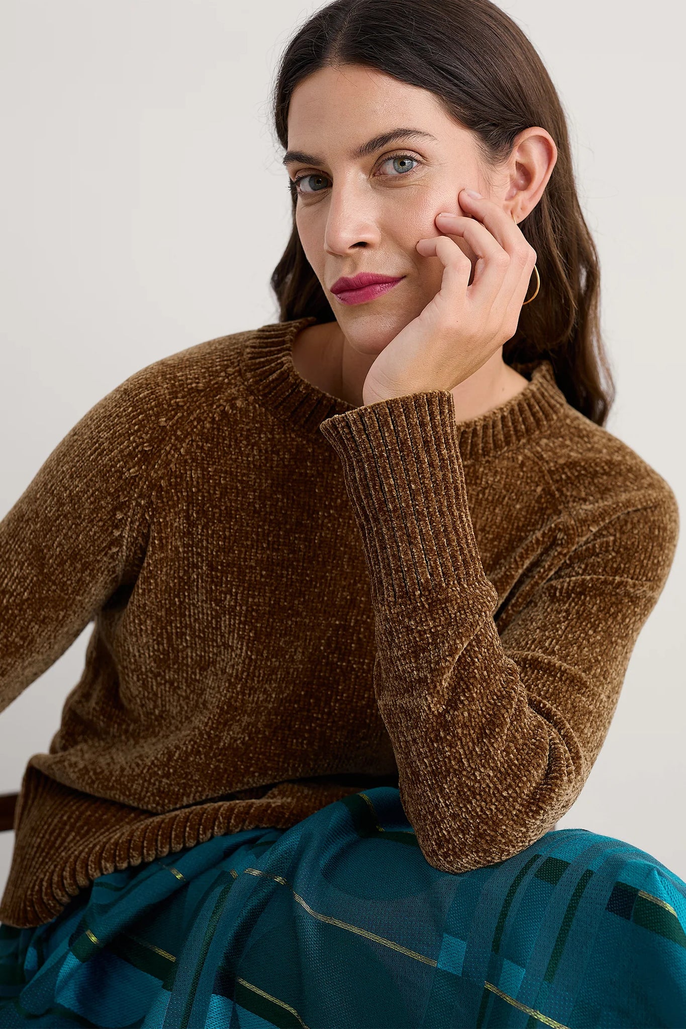Our Sycamore Jumper is one you'll reach for time and time again. It's crafted from a soft chenille knit and has an easy fit, boasting raglan sleeves and a comfortable crew neck. Finishing details include a jersey stitch through the body and a ribbed trim at the neckline, cuffs and hem.