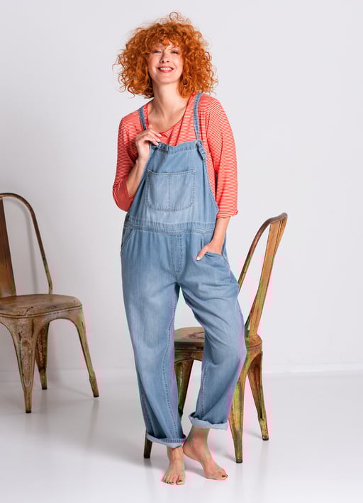 60% Tencel, 40% Baumwolle (kbA). Pflege: Schonwäsche 30°. Außenbeinlänge bei Gr. M ca. 99 cm. Fertigung in der Türkei. Farbe: light denim (42)